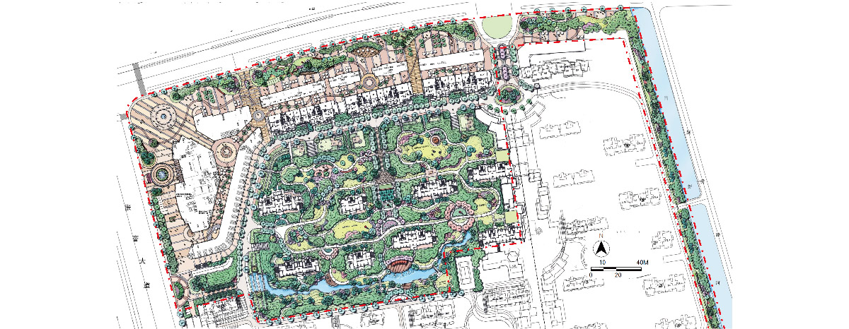 江城逸品位于江苏省海门市滨海新城的核心区,是一个集商业、酒店、SOHO办公、住宅区的城市综合体。 在与建筑风格融合的前提下,商业景观根据酒店、SOHO、商业风情街的不同业态特征,以铺装、水景、雕塑等元素诠释海门的地域文化特征,打造独具特色的开放景观空间。住宅景观以“公园式住宅”为理念,以功能需求为立足点,通过五个特色园子、三个活动中心,打造主题鲜明、生态健康的休闲居住环境。 |
