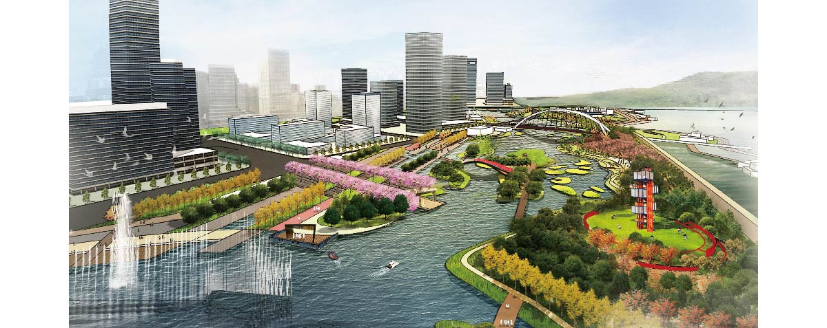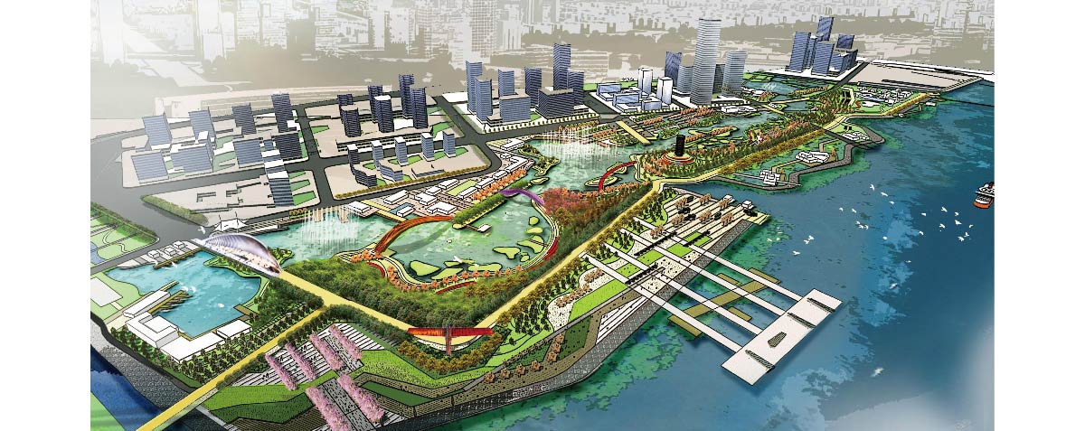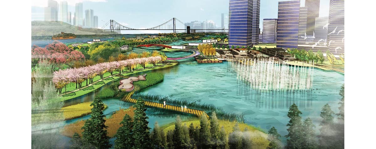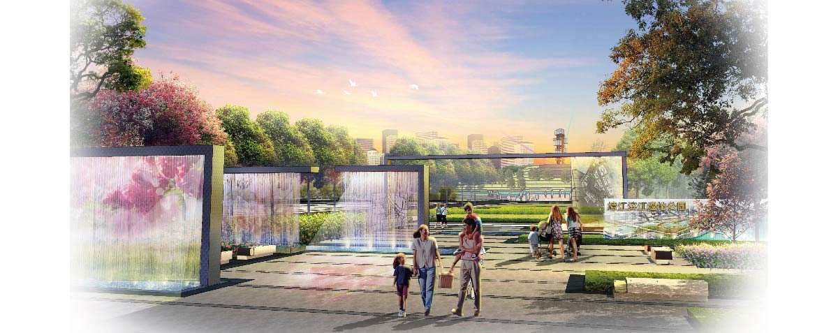 湿地公园位于长江下游北岸,是靖江新城滨江区域发展的催化项目。设计创造性的突破水网肌理,创建多元立体的活力“城市阳台”,运用海绵城市理念,营造适合当地风貌的滨水湿地公园,赋予基地新的标志性元素,形成新的城市名片。
