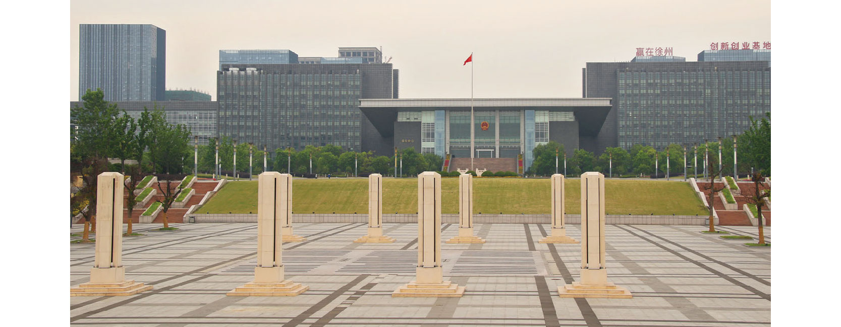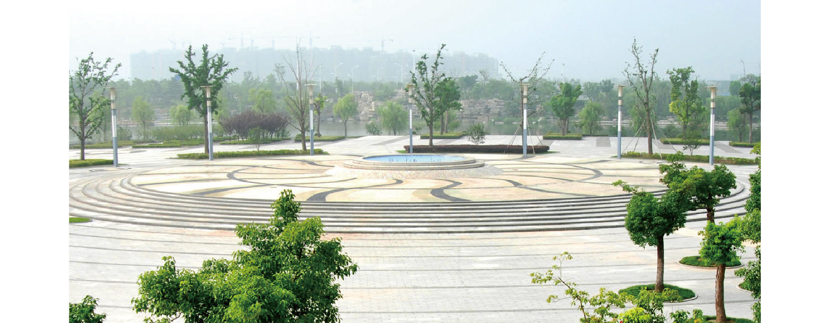 徐州市行政市民中心广场,位于新城区的核心位置,集行政办公、文化展示、休闲活动等功能于一体,展现了城市形象及建设理念。广场景观以“印记·徐州”为主题,体现楚汉文化的地域特色,以对称规则布局,营造了气势宏大的中轴景观,成为徐州的一张城市名片。 项目分为三大功能区,广场草坪区,平整如毯,绿意盎然,烘托着庄严的旗台;下沉式广场,以壮观的旱喷泉和主题浮雕装饰柱为主体,构成动感而富有文化内涵的活动空间;休闲绿地,以乡土树种为基础构建植物群落,自然生态,亲切宜人。 为使植物景观与大尺度的广场空间相协调,项目使用了一批大规格乔木。移栽时恰逢夏季,项目部采用移栽苗、加大种植穴、增加苗木土球等措施,保证了大树栽植的成活率,且保持树形优美。如今的广场景观,功能设施齐全,环境优美舒适,是城市的地标性景观。 |