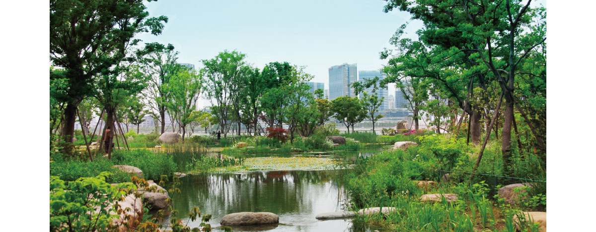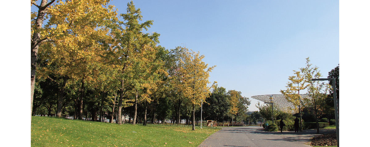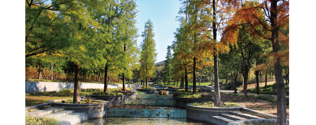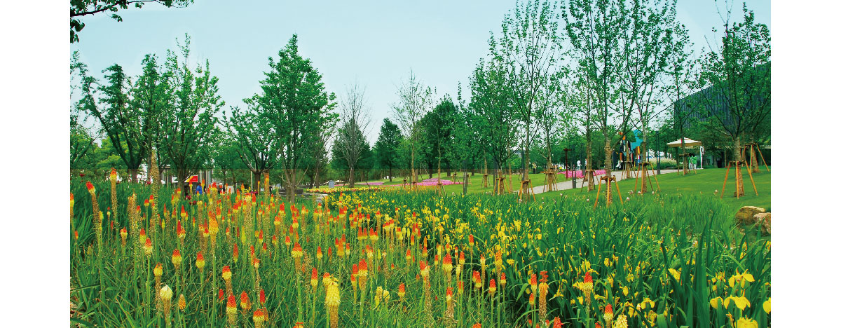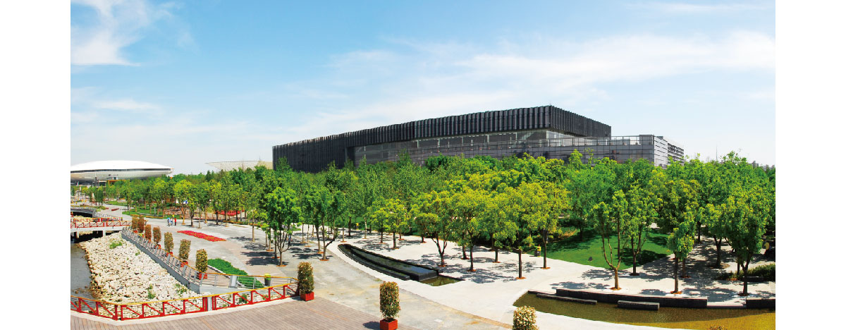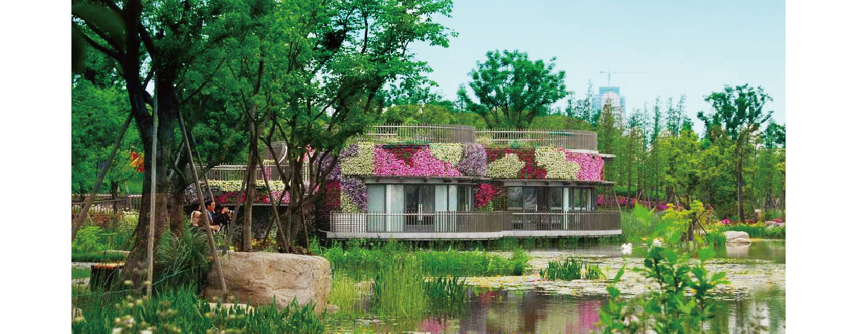 世博公园位于上海中心城区,是自然生态功能与城市人文景观结合的代表作,展开的扇形布局,体现了上海“海纳百川、追求卓越、开明睿智、大气谦和”的城市精神。